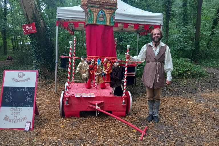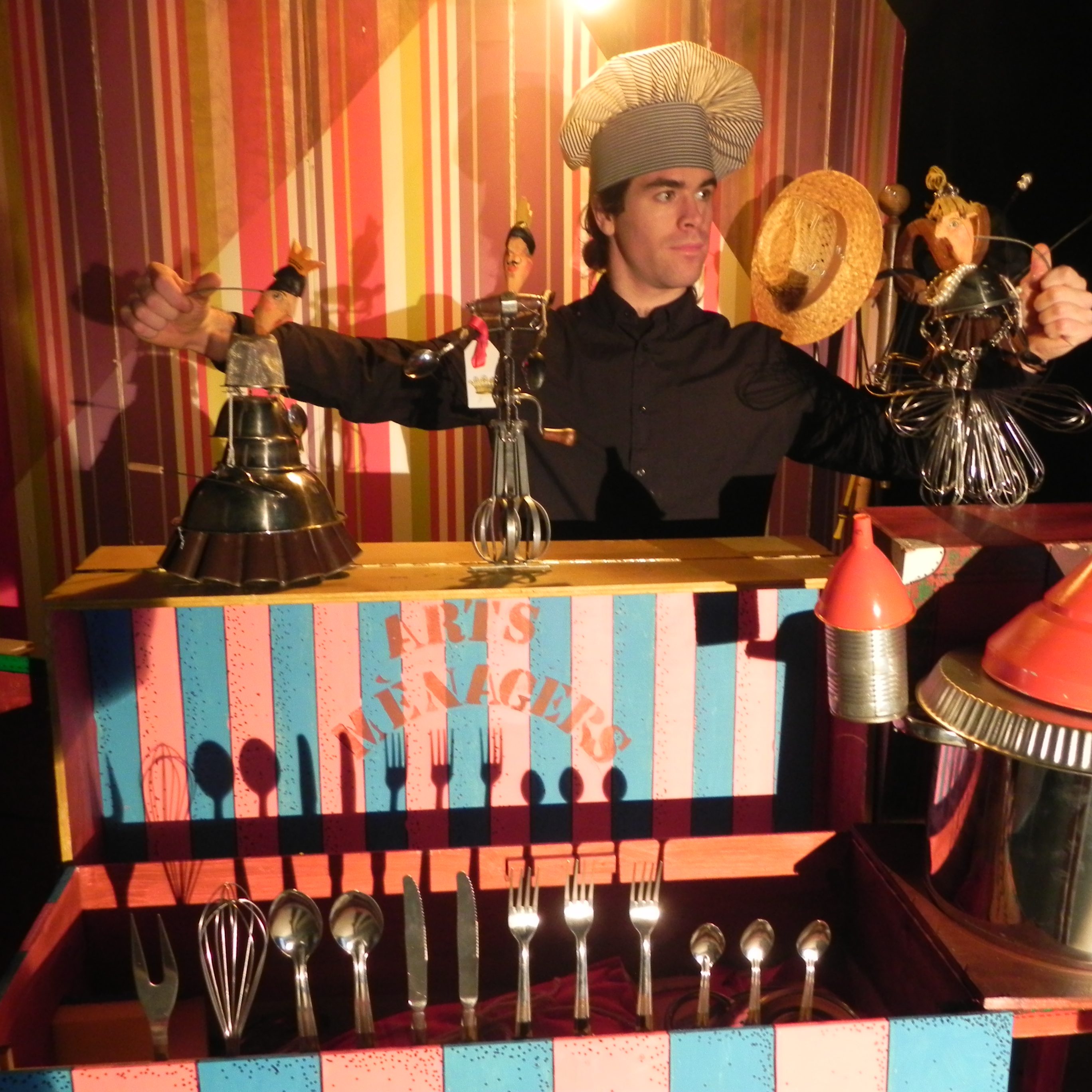 Reconstitution d’un castelet porté en spectacle extérieur pour raconter fables et fabliaux du Moyen Age et de la Renaissance.
