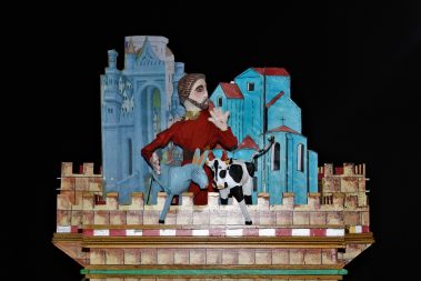 Reconstitution d’un castelet porté en spectacle extérieur pour raconter fables et fabliaux du Moyen Age et de la Renaissance.